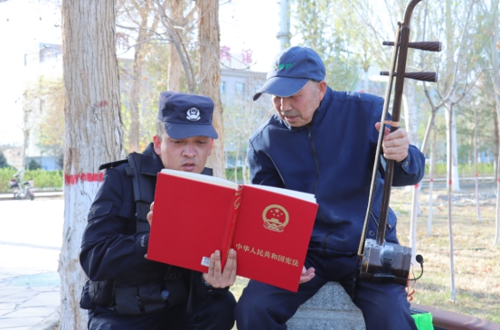 在滨河景区内,辅警巴合提牙尔耐心地为一位大爷讲解宪法知识:“叔,宪法是国家的根本法,它保障了咱老百姓的诸多权利,您看在这本书里面都有详细解读。”民辅警用通俗易懂的语言,将法律条文转化为群众听得懂、记得住的家常话,细致解读宪法中与群众日常生活息息相关的内容,让宪法精神真正深入人心。