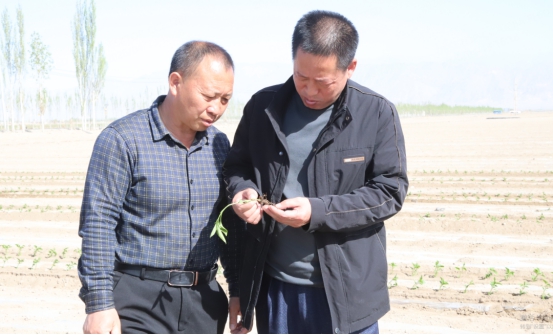 和硕县曲惠镇榆树园村种植户陈勇均说:“今天农业技术员来我们农田指导施肥、铺膜、栽苗及管理问题,我们学到了很多农业知识,后期会严格按照技术要求,做好管理,争取有个好收成。”