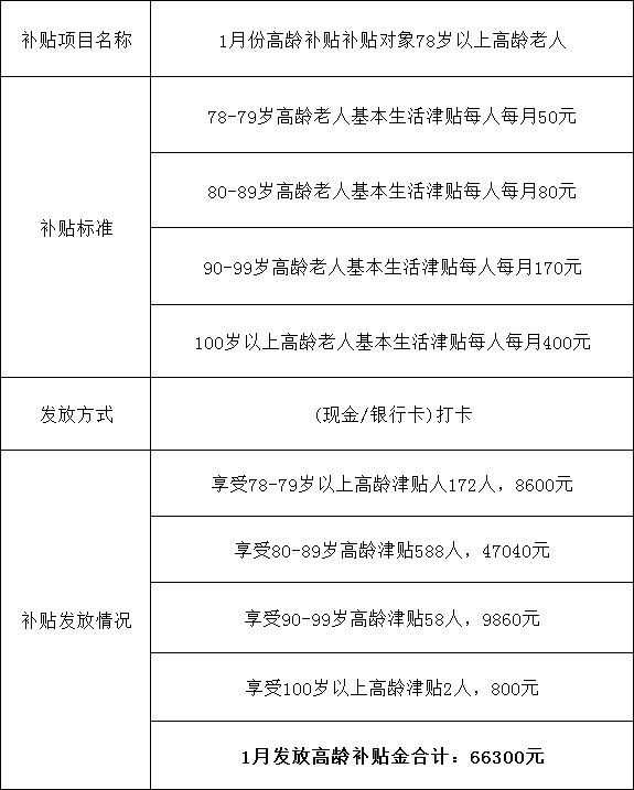 2026年1月份特吾里克镇高龄津贴公示表