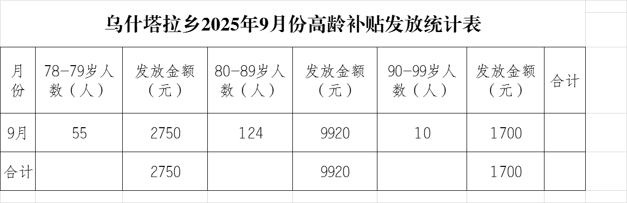 乌什塔拉乡2025年9月份高龄补贴发放统计表