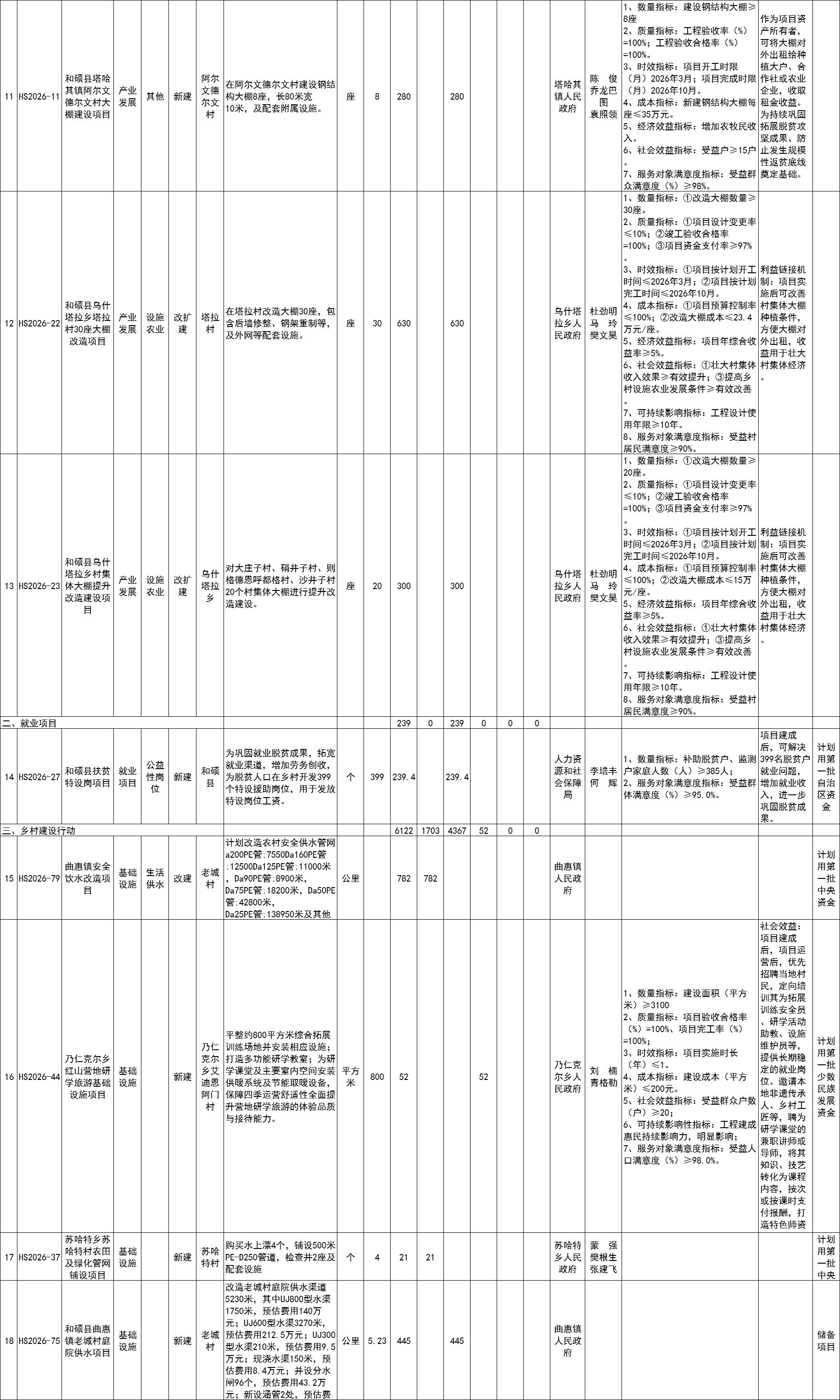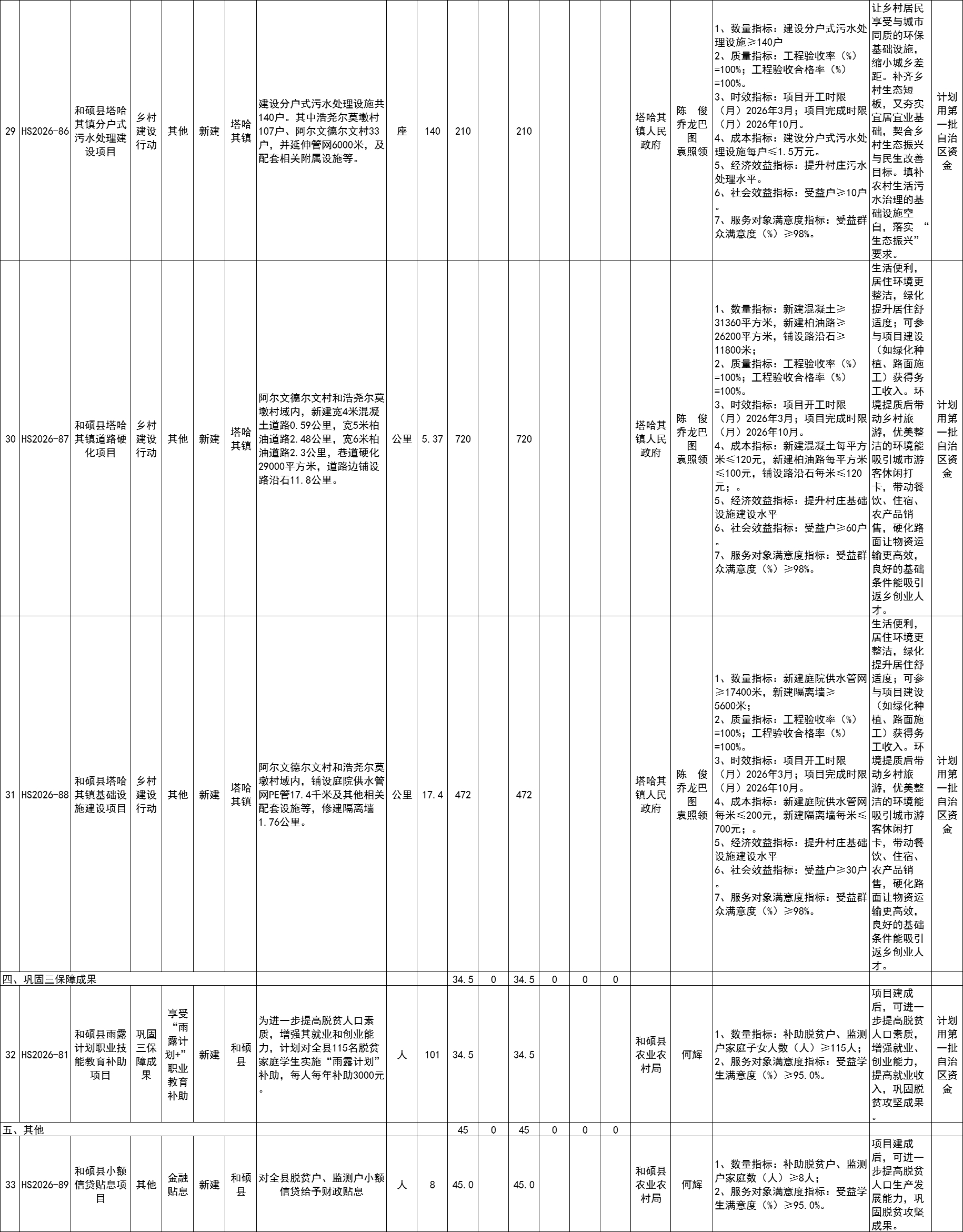 和硕县2026年巩固拓展脱贫攻坚成果和乡村振兴项目计划库