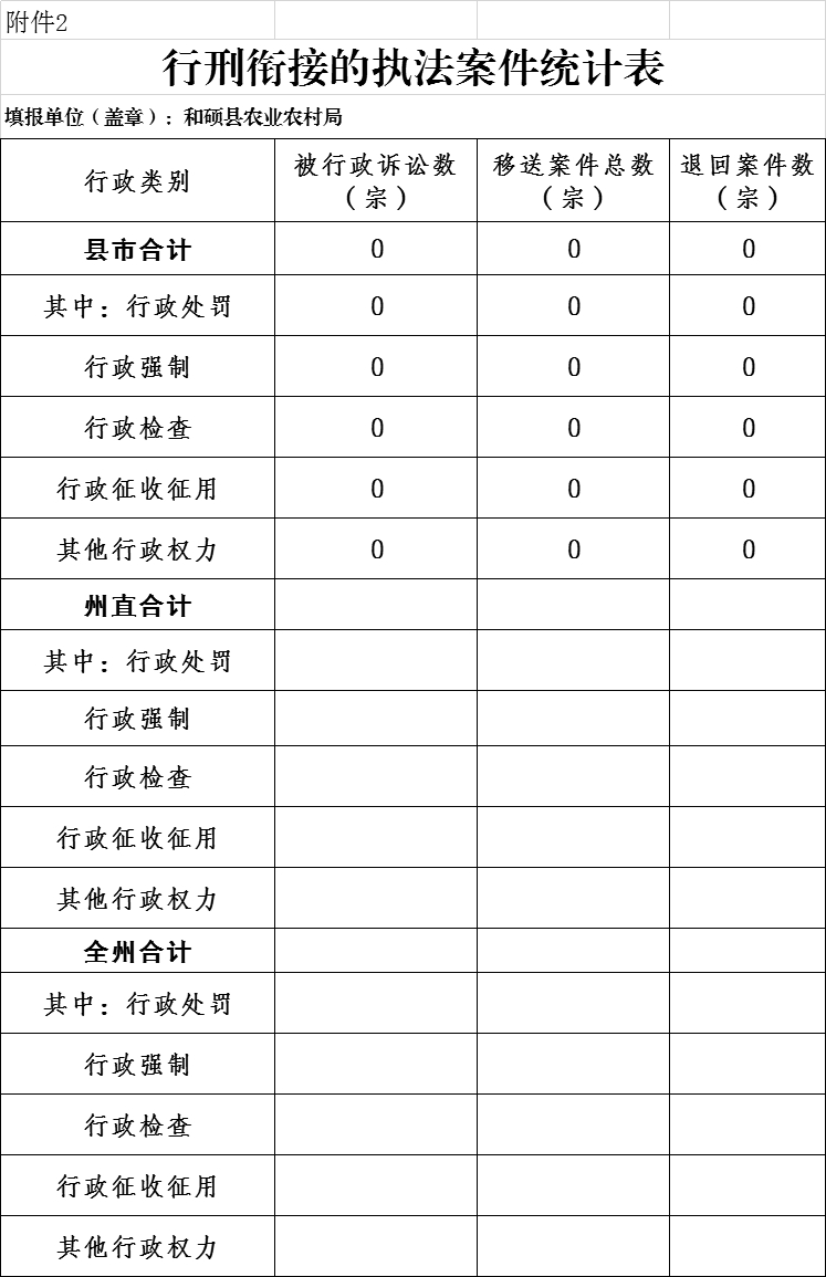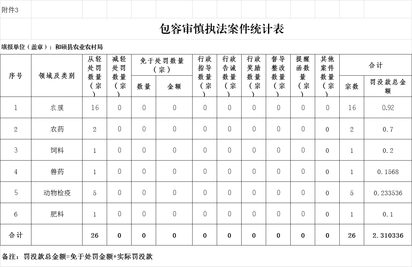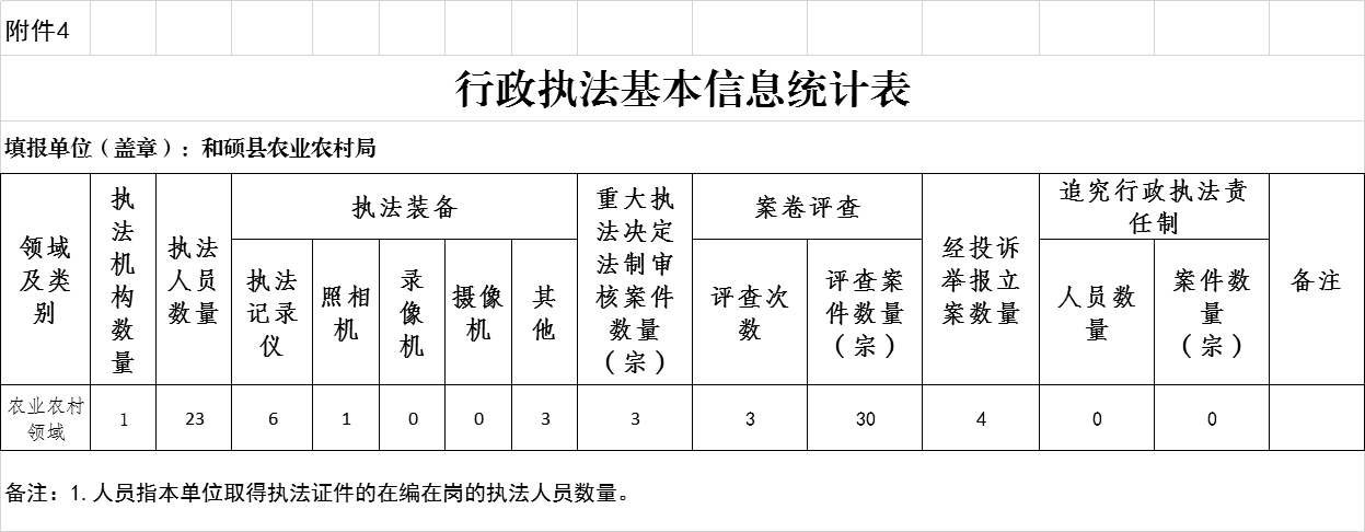 和硕县农业农村局2025年度行政执法数据统计表