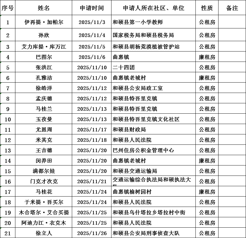 申请公共租赁房公示表(十一期)