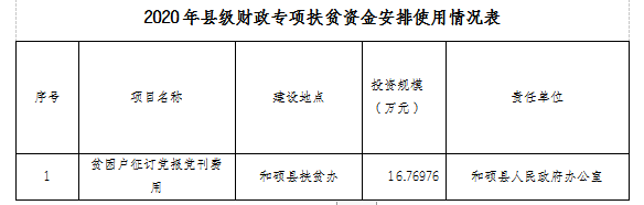 2020年,和硕县县级财政专项扶贫资金安排征订党报党刊费用16.76976万元,现将有关资金安排情况公示如下: