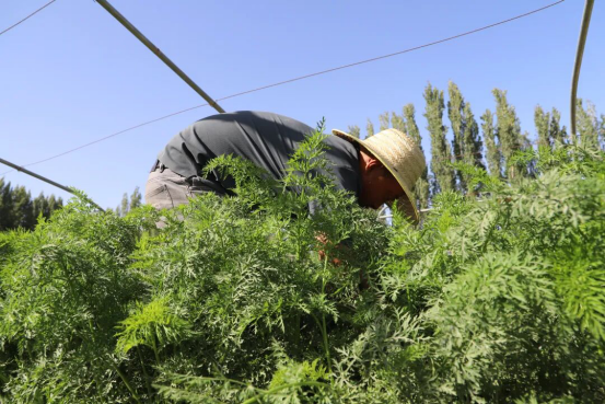 近日,记者走进和硕县苏哈特乡苏哈特村复播蔬菜基地,泥土芬芳裹挟着蔬菜清香扑面而来。田垄间,二茬胡萝卜幼苗整齐排列,农户们俯身摘苗、除草,一派繁忙景象。