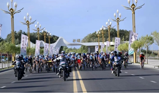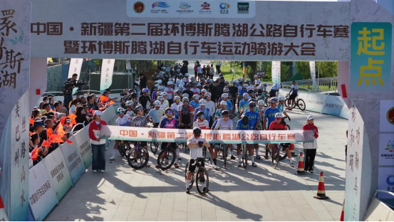 中国·新疆第二届环博斯腾湖公路自行车赛男子精英组第二赛段开赛:101名精英竞逐71公里最美赛道