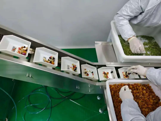在生产基地分拣车间,来自和硕县塔哈其镇的村民木沙江·吾甫正熟练地检查饮片包装。木沙江·吾甫家距离基地仅15分钟路程,如今无需奔波就能实现稳定就业,每月3000多元的工资让日子愈发有奔头。