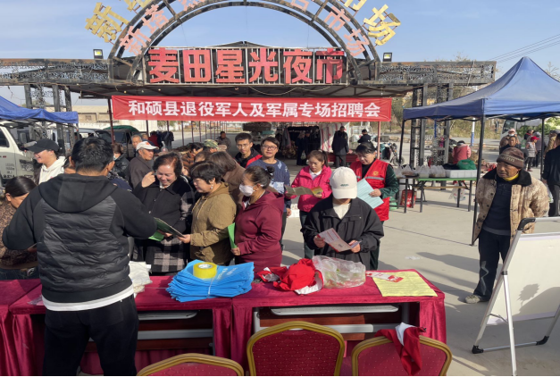 2025年10月23日和硕县退役军人事务局在新塔热乡人力资源服务市场成功举办了退役军人及军属专场招聘会。
