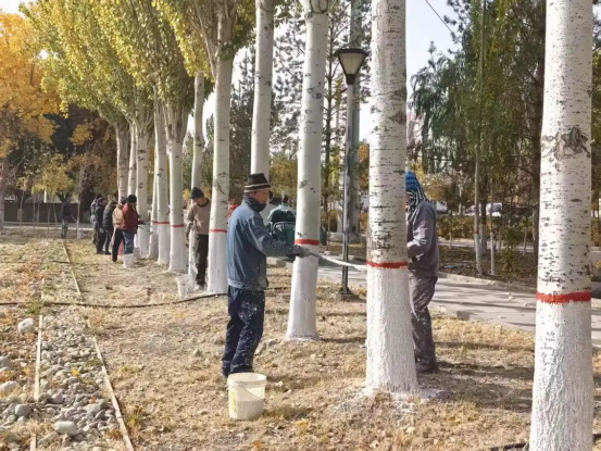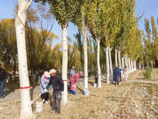和硕县:精细化开展树木涂白作业 为城区绿植筑牢越冬 “防护盾”