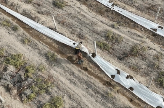 奋力推动和硕高质量发展丨盖上“棉被”睡得香——和硕县3.1万亩酿酒葡萄陆续进入“冬眠”季