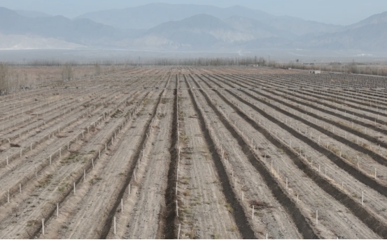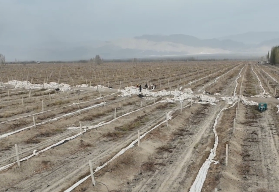 “葡萄是抗寒能力较弱的植物,它的根系在零下5度就会受到一定程度的冻害,枝条和芽叶在零下10度左右也会出现不同程度的冻害,所以我们每年在11月初开始冬埋,11月20日之前完成冬埋工作。若超过11月20日,气温大幅下降,在零下17度时土壤封冻,严重影响冬埋。为确保葡萄能安全越冬、避免枝条外露受冻,我们每年的埋土厚度控制在40公分左右。冬埋期间对劳动力需求较大,除了自有150名左右工人外,还会从外部大量雇佣零工,大概300名左右,共同协作完成葡萄越冬的冬埋任务。”和硕县芳香庄园葡萄种植基地技术部经理林文德说道。