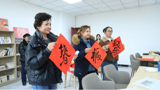 文艺表演区里,独唱《草原在哪里》旋律悠扬,豫剧选段韵味醇厚,一个个接地气的节目轮番上演,赢得台下掌声、喝彩声此起彼伏;书法送福区前早已排起长队,志愿者挥毫泼墨,一副副饱含新春祝福的春联、一个个遒劲有力的“福”字跃然纸上,村民们捧着心仪的春联,脸上洋溢着幸福的笑容。