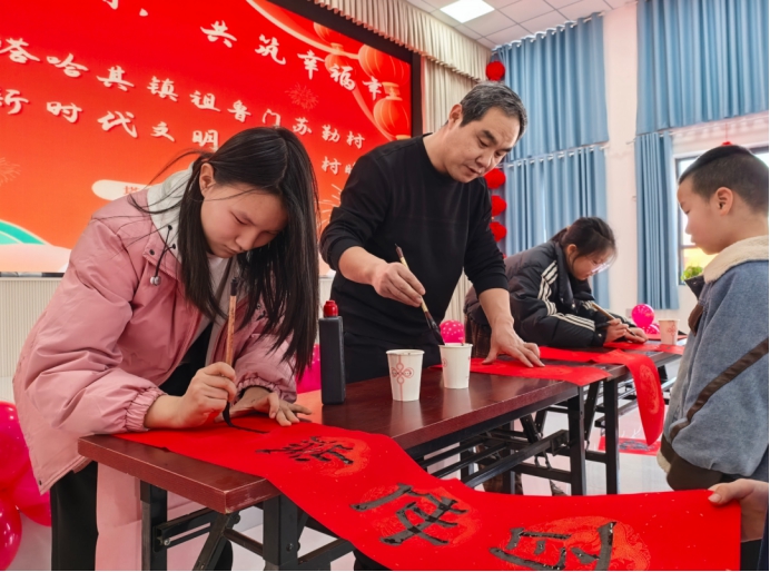 “写春联、送春联是‘送文化下乡’的重要载体,更是弘扬中华优秀传统文化、迎接传统新春佳节的重要形式,更是我们后盾单位联系群众、服务群众的具体体现。作为后盾单位,我们积极组织教师和学生书法爱好者代表,主动参与此次村晚活动,为村民挥毫泼墨写春联、送祝福,就是想把温暖和关怀送到群众身边。”和硕县教育和科学技术局副局长郭金欢说道。(融媒体记者 李雪峰)