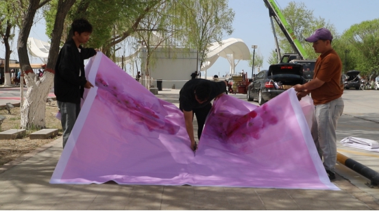 “‘五一’假期在即,游客量将持续攀升,我们正争分夺秒赶工期、抓进度,全面检修景区设施,加固美化园区路面、护栏等区域,全力保障景区设施安全、环境整洁。我们将保质保量完成筹备工作,以最佳面貌迎接八方游客,让大家玩得舒心放心。”和硕县金沙滩施工工人马建林说道。