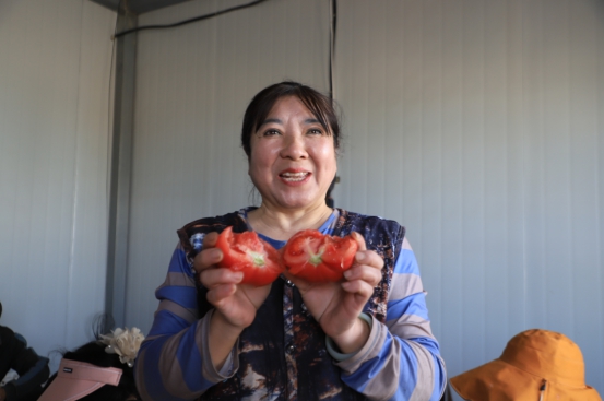 和硕县务工人员阿布都萨拉木·艾尼瓦尔说:“在这边摘西红柿,不用跑远门,离家特别近,每天能挣100多元,既不耽误照顾家里,又能增加收入。而且这里的西红柿品质好、口感佳,我在这里务工也特别舒心。”