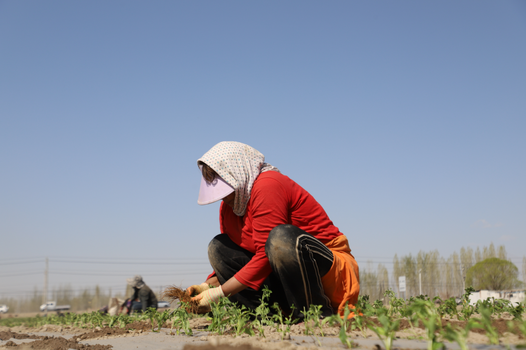 “我们企业与当地种植户、合作社签订了保底收购订单,全程提供专业化服务保障。移栽前,我们的技术团队已完成土壤检测、肥质分析等前期工作,精准制定种植方案;当前正值移栽关键期,我们每天安排技术人员下沉田间地头,现场指导农户规范移栽、科学浇水,及时解决种植过程中遇到的各类难题,就希望今年的甜叶菊能长得好,农户通过种植甜叶菊增产增收。”甘肃亚盛农业综合服务有限公司驻疆业务员张维彤说道。